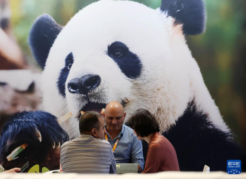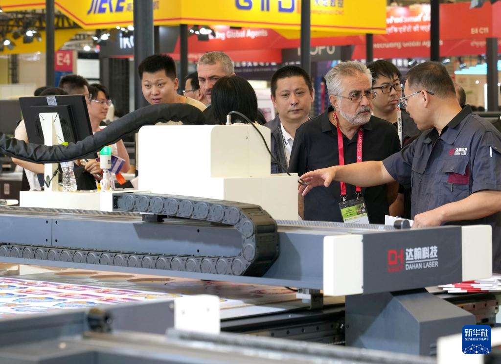 9月17日,参观者在了解制作广告标牌的3D打印设备。