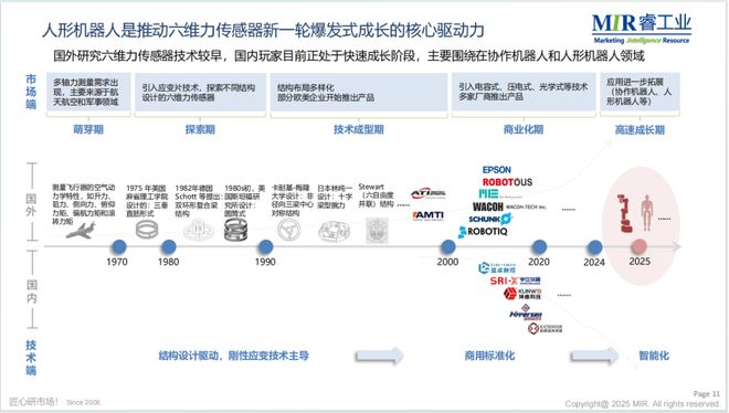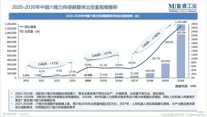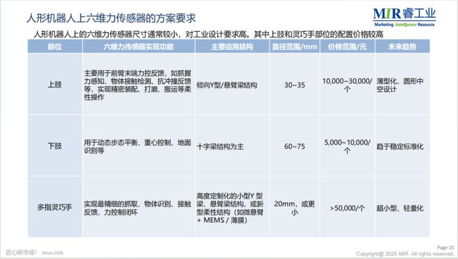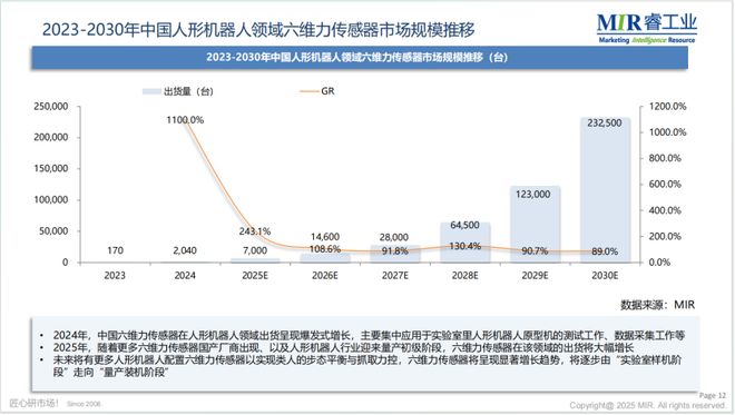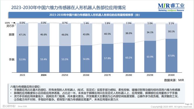 未来,人形机器人领域被明确视为六维力传感器最大的增长动力来源。2024年作为人形机器人产业元年,标志着该领域加速发展;伴随人形机器人量产落地与规模化应用,其搭载的六维力传感器将迎来爆发式出货增长,显著驱动市场扩容。