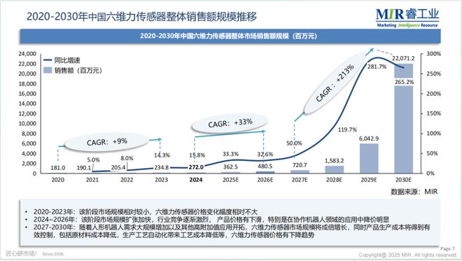 《2025年中国人形机器人六维力传感器市场研究报告》,本次报告调研范围为中国大陆市场(不含港、澳、台),仅含在中国大陆内发生的采购行为,出货量部分为厂商实际对外交付六维力传感器的数量,销售额部分为厂商销售六维力传感器获得的金额。