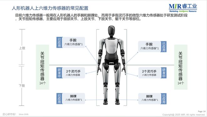 人形机器人搭载的六维力传感器通常需满足小型化设计要求,其功能依部署部位高度分化: