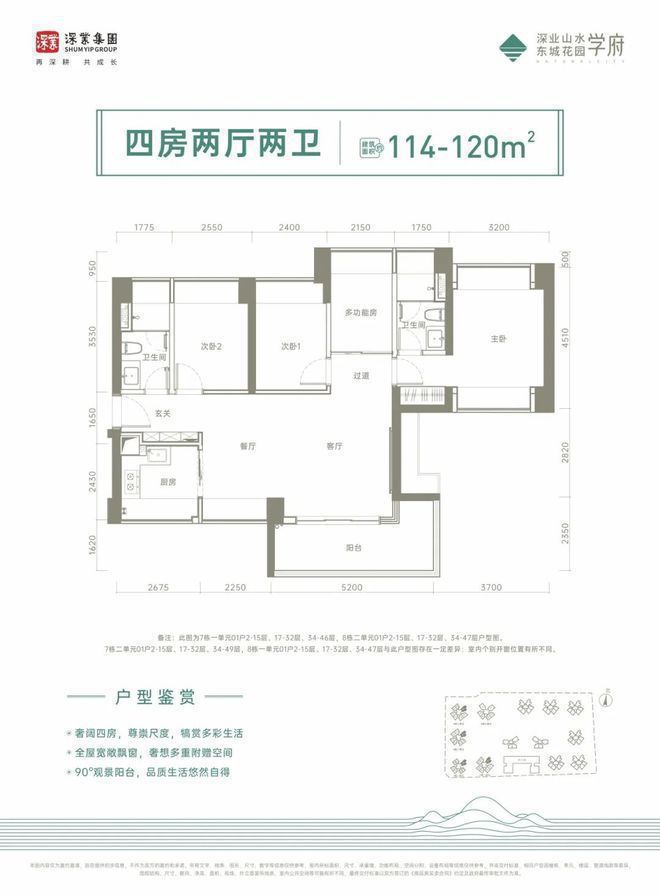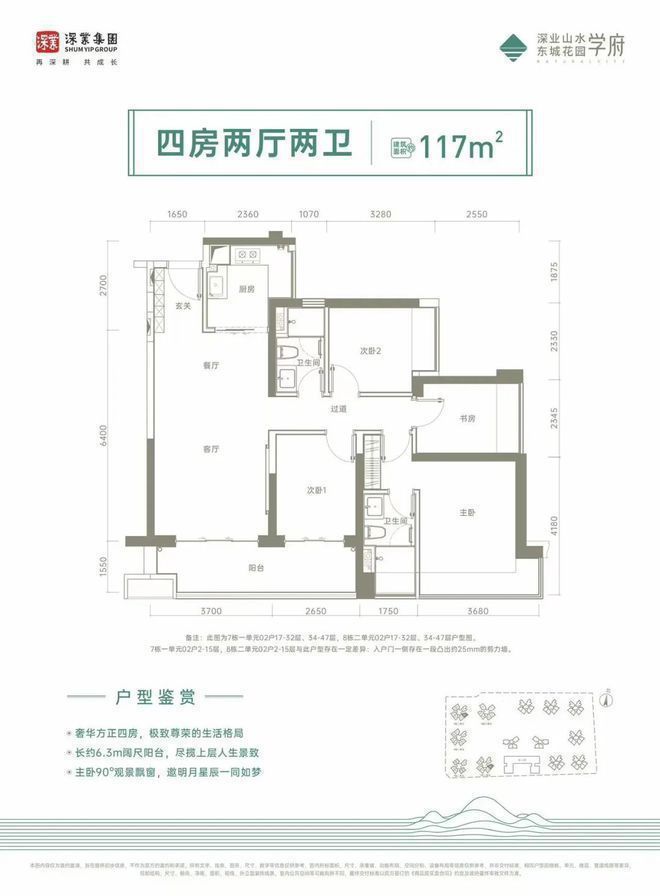 如果预算再高一些,很推荐这个约117㎡的户型。6.3米大阳台非常惊艳,景观视野开阔,马峦山郊野公园的连绵起伏,坪山CBD的璀璨流光,别人向往的诗和远方,都只是你窗外的寻常一瞥。