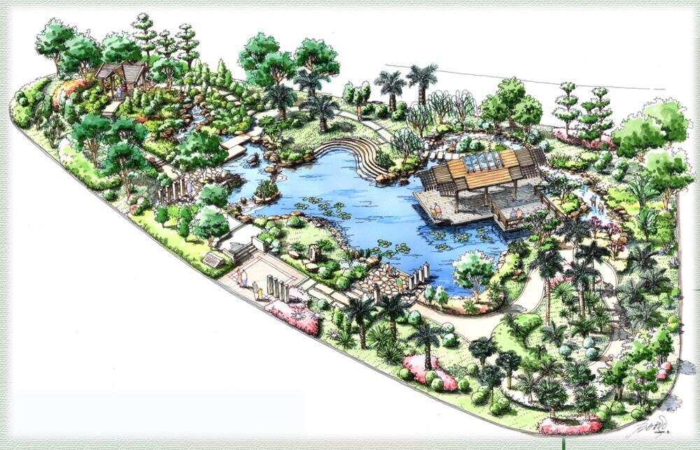 设计理念上,团队恪守“不做假古董”的原则。他们以岭南古典园林的山水骨架为基础,却用现代构筑物予以表达:水榭、亭台、桥廊、瀑布一应俱全,但手法却充满当代意识。“骨子里流的是传统岭南人的血脉,但手法上面要创新。”叶劲枫一边展示着当年由他亲手绘制的效果图,一边解释道。在那个电脑建模尚不普及的年代,每一笔手绘勾勒都凝聚着设计者们对岭南园林的当代诠释。