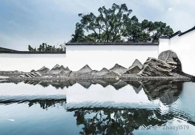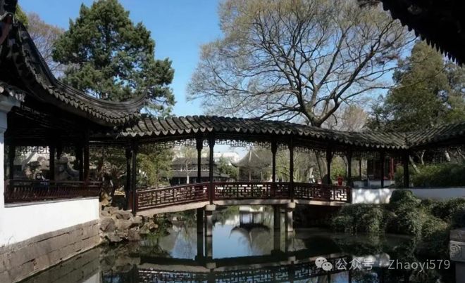 间接借景是一种借助水面、镜面映射与反射物体形象的构影方式。由于静止的水面能够反射物体的形象而产生倒影,镜面或光亮的反射性材料能映射出相对空间的景物,所以,这种景物借构方式能使景物视感格外深远有助于丰富自身表象及四周的景色,构成绚丽动人的景观。