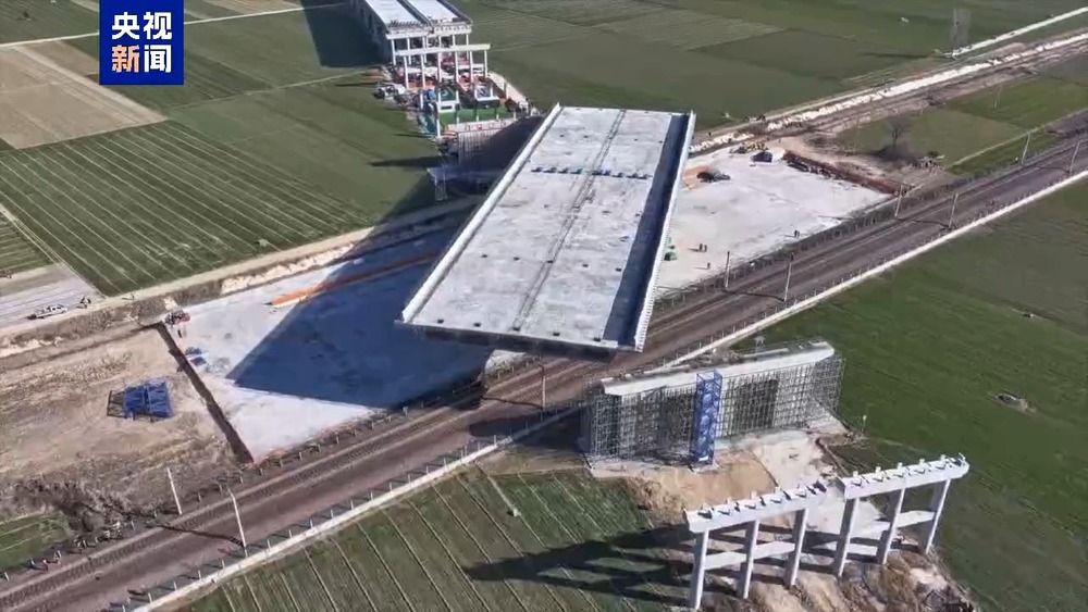 今天(1月8日)上午,在新乡市延津县安罗高速跨新兖铁路立交工程现场,经过90分钟的紧张作业,新兖铁路特大桥转体施工成功完成。