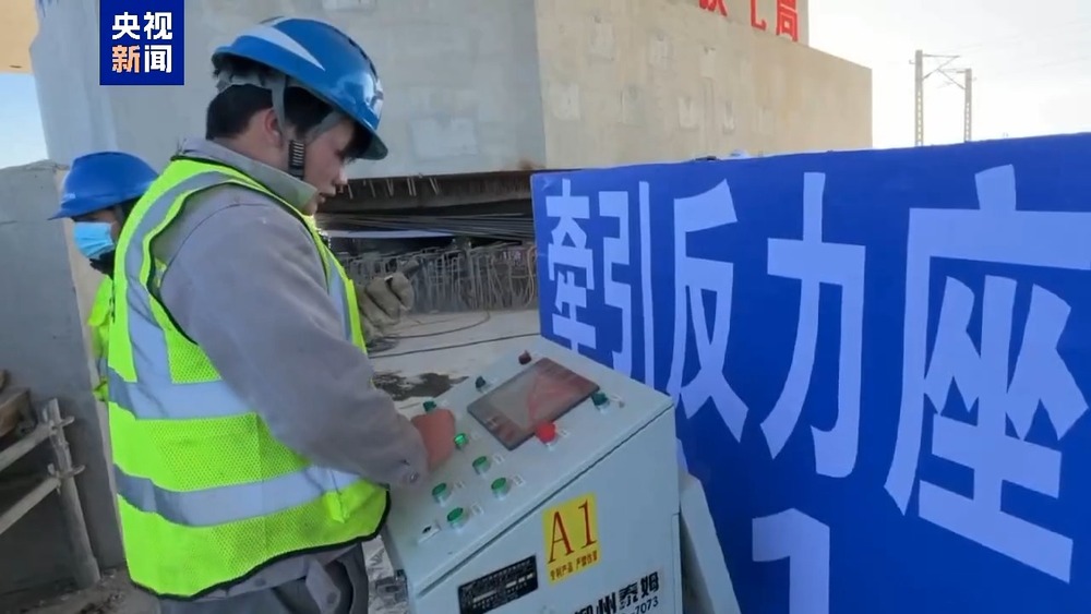 郑州铁路建设管理有限公司副总经理梁宪昌介绍,为保证转体顺利进行,牵引系统选用4台7000KN型千斤顶及同步自动连续牵引系统,通过拽拉锚固于转台周围的钢绞线,形成水平旋转力偶,从而推动转体系统转动,使桥梁达成精准的转体效果。